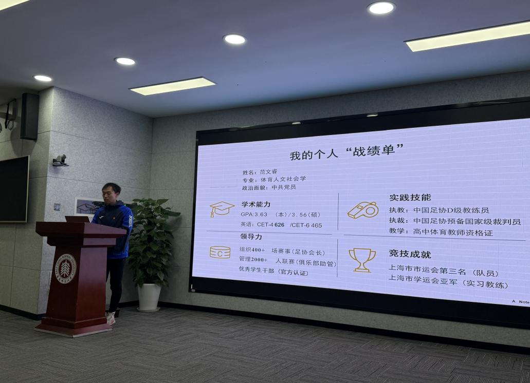 降佳俊同志以“科研之路的深耕与收获”为主题,不仅梳理了从选题文献积累到论文撰写投稿的全流程方法,更分享了自己曾数十次修改论文选题、无数次打磨文稿的经历,他建议大家“要把论文写在我国体育事业发展的实践中”。范文睿同志则围绕“从校园到职场的跨越”,不仅细致讲解了求职信息筛选、简历优化及面试技巧,还介绍了“提前调研用人单位需求、将专业优势与岗位要求精准匹配”的求职心得。两位同志的分享生动诠释了将个人努力融入国家需要的实践路径,引发了与会党员深入思考。鲜活的案例、实用的技巧引发了现场共鸣,不少党员还主动请教,交流氛围热烈而务实。