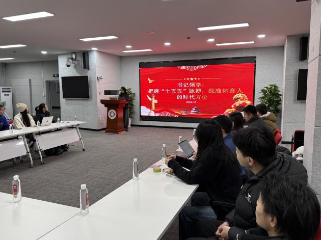 “‘十五五’规划将体育强国建设摆在重要位置,这不是抽象的战略要求,而是我们体育专业学子的成长机遇。”程忠华在专题领学环节,系统解读了党的二十届四中全会精神与“十五五”规划建议中关于体育事业发展的部署要求。她还结合支部党员专业特点,引导党员们思考“科研选题如何对接国家需求”“职业规划如何契合行业导向”,推动理论走向实践。